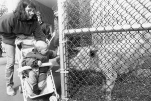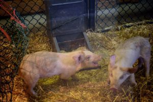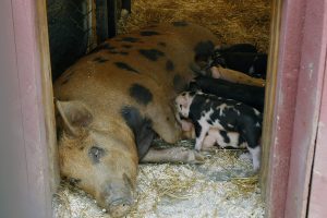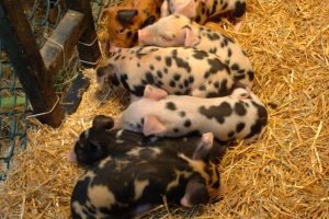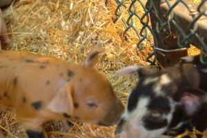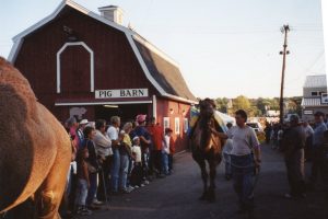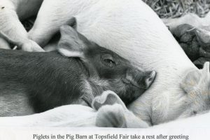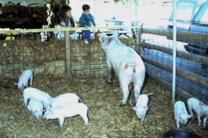 In 1996 the Pig Barn was built. Local farms come and exhibit their pigs and piglets at the Fair. There are no competitions within the pigs, however they’re here for the public to enjoy and observe. The Pig Barn, one of the most popular venues at the Topsfield Fair, houses two sows and numerous piglets from Colby Farm in Newbury, MA. Older piglets can be found in the Farmyard tent area. Various breeds of swine are brought in for display each year to help raise public awareness that not all pigs are white in color. You may see red, black, white, or a combination of all these colors. Kids always love to go to the pig barn to see the different types of pigs!
